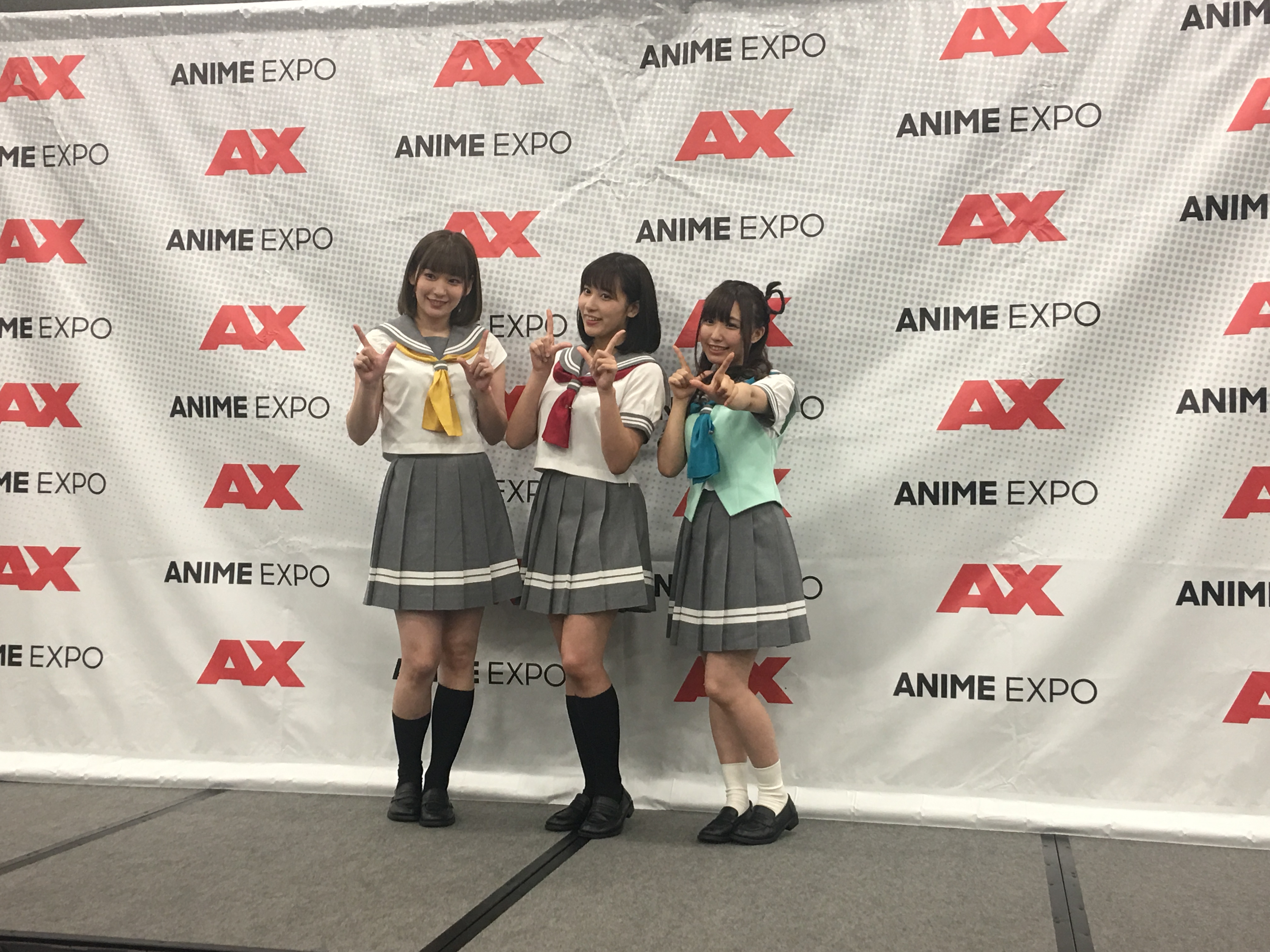 One of Anime Expo 2019’s prime events was Aqours’ two-day concert. It was the group’s fourth appearance at the convention, and I was lucky enough to be part of an interview with some of the members and hear their thoughts regarding their return to America and roles in Aqours. The girls walked in and introduced themselves with their adorable Engrish: Aina Suzuki (Mari Ohara), Anju Inami (Chika Takami), and Kanako Takatsuki (Hanamaru Kunikida). After giving their greetings, they sat down and the questions began.