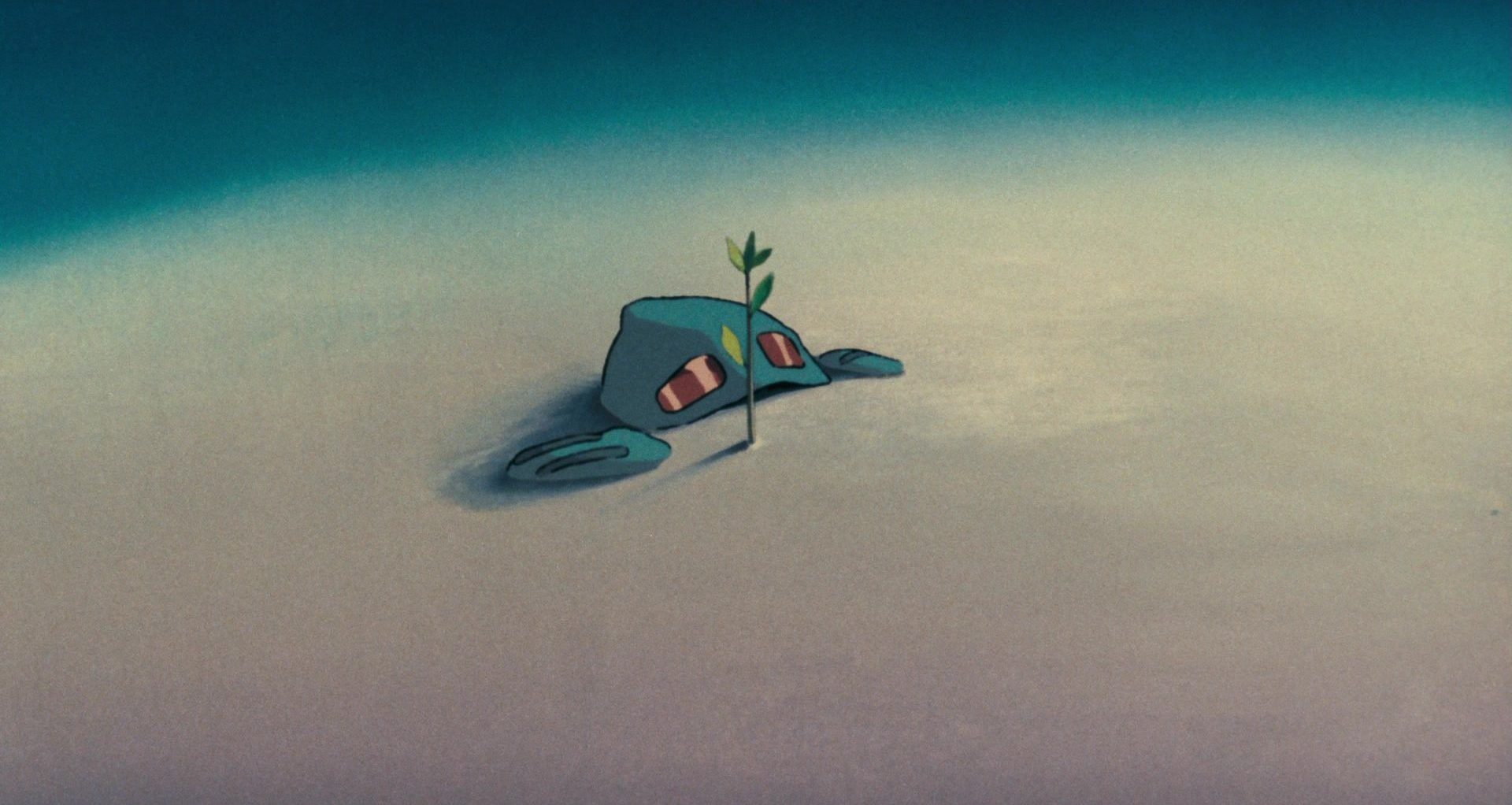 The film concludes on one important frame. A fresh sapling has risen from the desolate earth, next to Nausicaa’s lost aviator goggles. The image serves as a reminder for me that even out of poison and dirt can grow a most marvelous thing—it’s up to us, though, to choose peace over war, forgiveness over anger, and selflessness over greed to let that sapling grow.