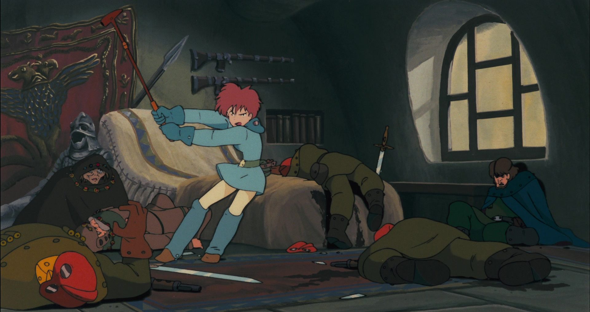 Princess Nausicaa is cut from the Studio Ghibli tradition of strong, female heroines. Even her appearance challenges the stereotypical princess, as she has short hair and wears aviator gear instead of a ball gown. Nausicaa is also more at home flying a glider and repairing a windmill than she is meeting perspective suitors. Respected and adored by her subjects, she cares for their well-being and safety. When confronted by a rival kingdom, who storms into the peaceful village and quickly conquers it, killing Nausicaa’s father in the process, Nausicaa defeats the enemy soldiers and nearly murders all of them in her rage.