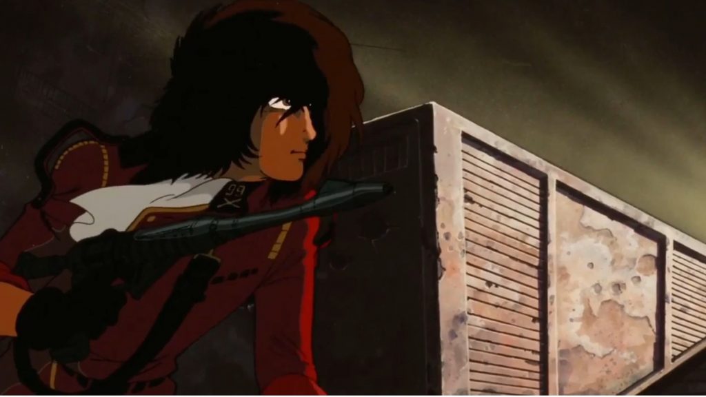 Arcadia of My Youth is an extravagant movie. Even in a medium not particularly known for its subtlety, the thing hits all-time highs of being overwrought. It seems like it can’t go five minutes without someone making a tearful speech about not losing hope, someone making a heroic sacrifice, or a giant, aeronautically improbable space ship crashing into something while people yell at each other. It’s a constant, almost bludgeoning string of emotional highs, but enough to show why its protagonist, Space Pirate Captain Harlock (in his second or third iteration by this point) is such an icon. It’s also a little morally iffy.
