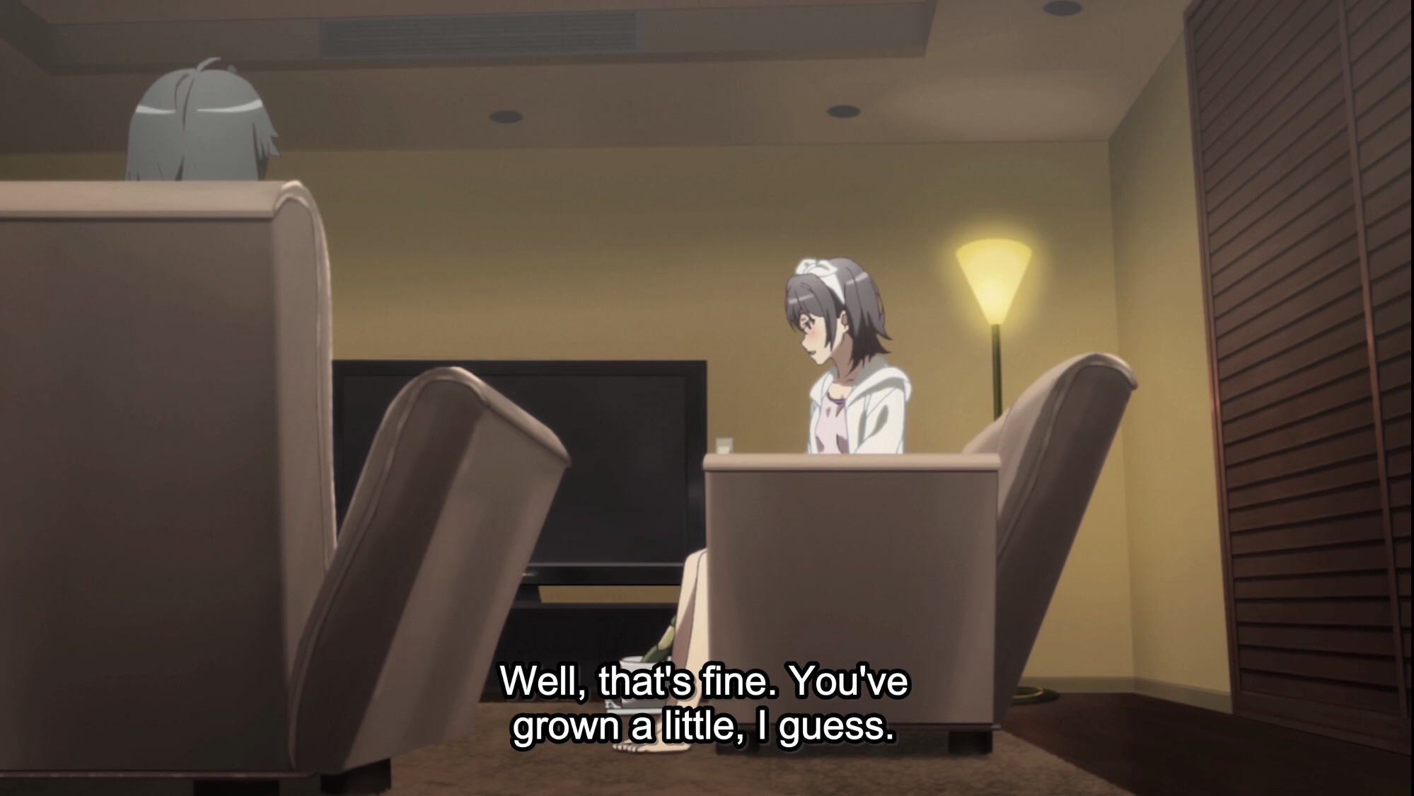 The action actually begins by going backwards. In the last episode, there’s a skip ahead to the fun Kawa-something meeting and touching Komachi scene, meant to slowly ease audiences back into the series. But episode two fills in the gap, with Yukinon making good on her declaration to speak with Haruno about her intentions to talk to their mom, and the latter finally acting like a big sister (though the argument could be made that she’s been an effective onee-san all along, if not exactly the warm and cuddly type).