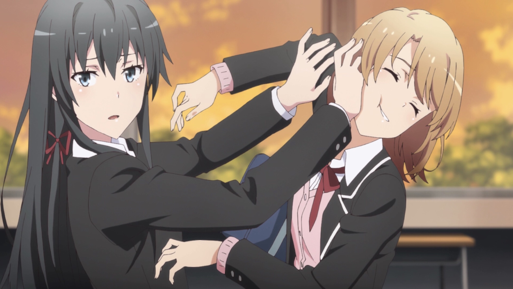 The action actually begins by going backwards. In the last episode, there’s a skip ahead to the fun Kawa-something meeting and touching Komachi scene, meant to slowly ease audiences back into the series. But episode two fills in the gap, with Yukinon making good on her declaration to speak with Haruno about her intentions to talk to their mom, and the latter finally acting like a big sister (though the argument could be made that she’s been an effective onee-san all along, if not exactly the warm and cuddly type).