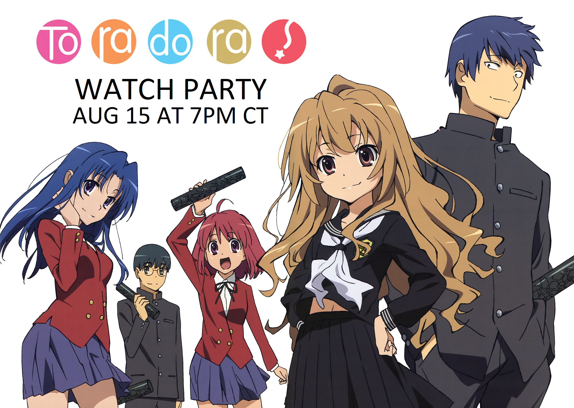 I’m happy to announce that we’ll be having our first ever watch party this coming Saturday, August 15th on Amazon Prime, as we dive into the first two episodes of the beloved romantic comedy (dramedy?), Toradora! If you’ve never watched the show, this is a great opportunity to start! Just this morning, I ranked it number three on my all-time fav list, Yes, it’s that good. Those of you who know, know—and if you know, you should come revisit the show with us!