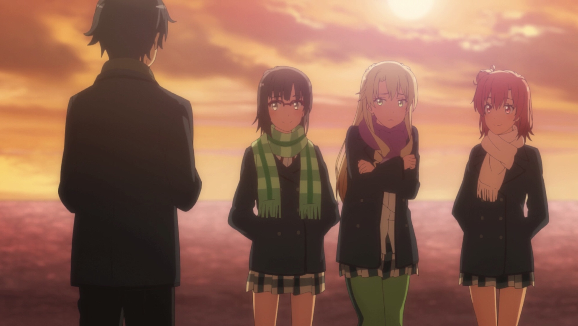 I think what’s key to unraveling this idea is to consider at what level of maturity they’re at. That idea even comes up in conversation between Yui and Haruno, when the latter says what I’ve been emphasizing all season: Yui is the mature one holding the trio together. But it’s hard even for her. Do you remember your relationships when you were 17? I bet they were emotional, complex, and probably not handled with the care that you handle relationships now. That much is true for me, at least. I saw so many things (not just friendships and romance) in black and white. I had trouble considering others’ feelings. And even my “best friends” hurt me, and I hurt them.