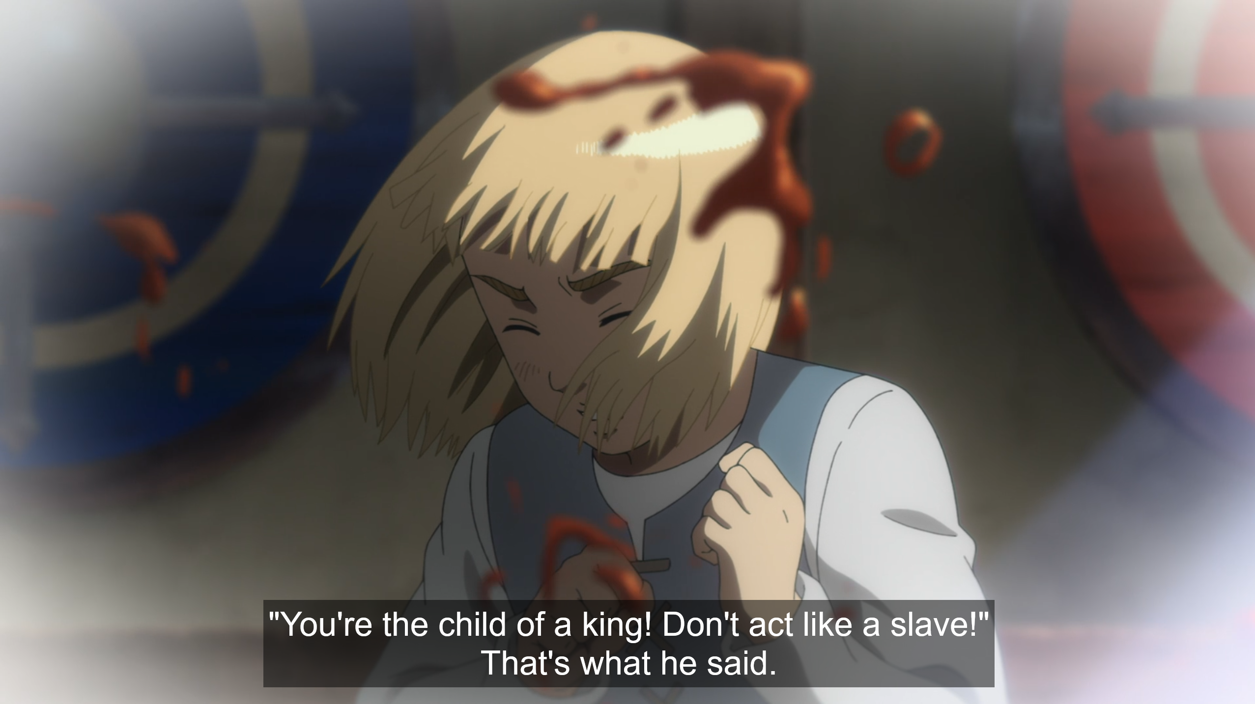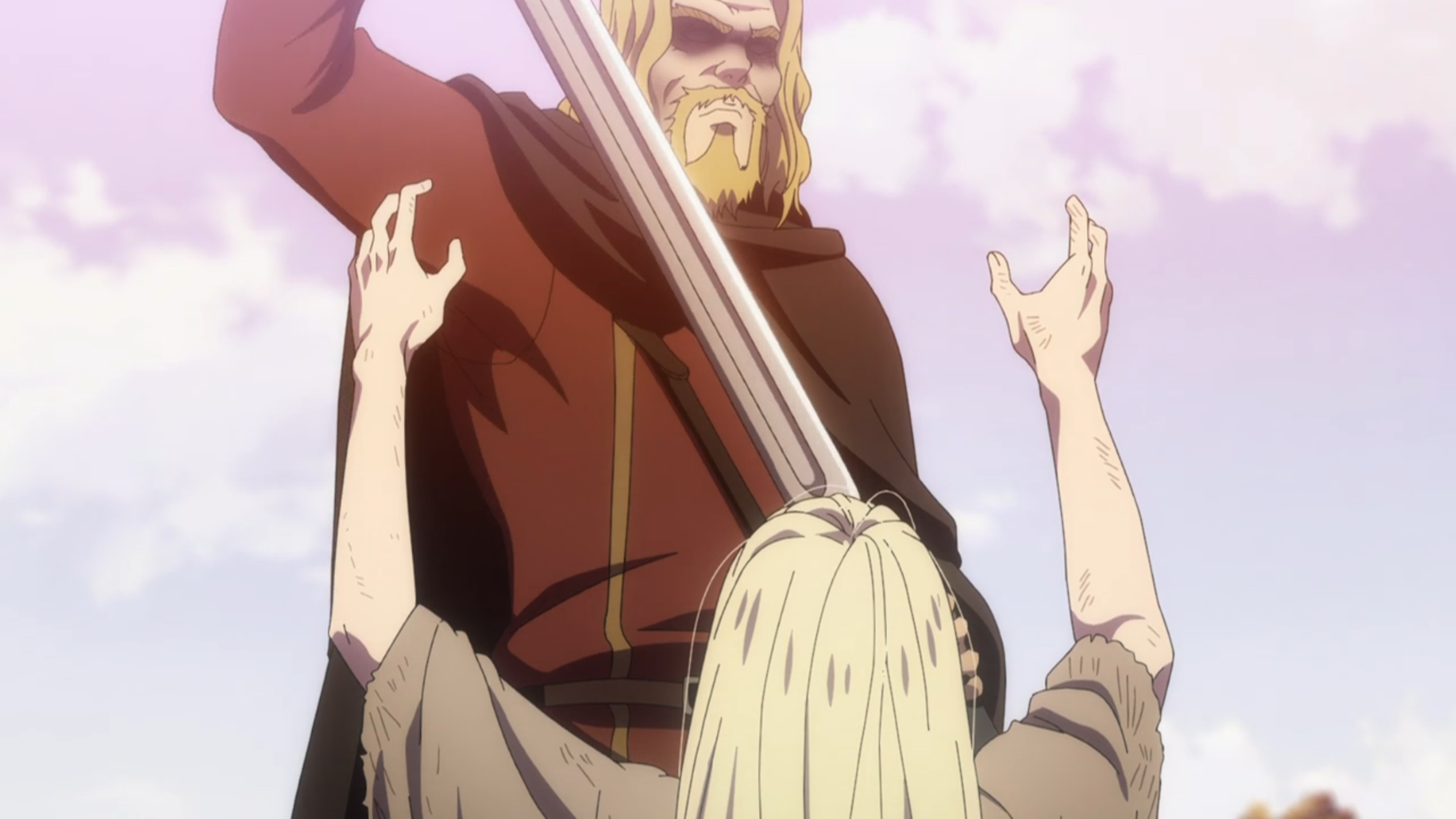 This father loves his son and protects him. This father even loves his enemies, punishing them, but still offering mercy. This father chooses death rather than to kill those he rightly should. Thors, now years (and by the finale, some 20 episodes) removed from the tale, is a good father, full of love and justice. And like the Heavenly Father, even though no longer physically in front of Thorfinn, Thors is still drawing him near, with memories of his goodness and visions that encourage him to forgive. The world has been terrible to Thorfinn, but the specter of his dad is even now trying to bring him peace. Why does Thorfinn not kill Askeladd, who he has sought vengeance on after all these years, even when the pirate is dying and tells him to drive the final knife home? It’s because that even though his hateful emotions erupt frequently, deep inside, Thorfinn has started to take his father’s lessons to heart; he has forgiven Askeladd for his crime, and further, as evidenced by how he returns to save the old man during Thorkell’s river attack and by his tears during their final goodbye, even loves him.