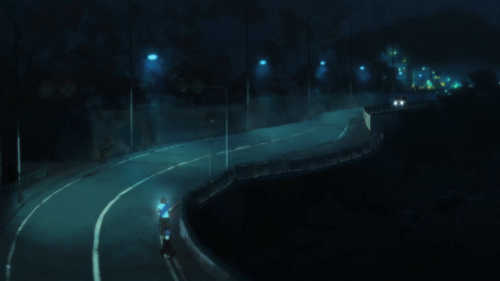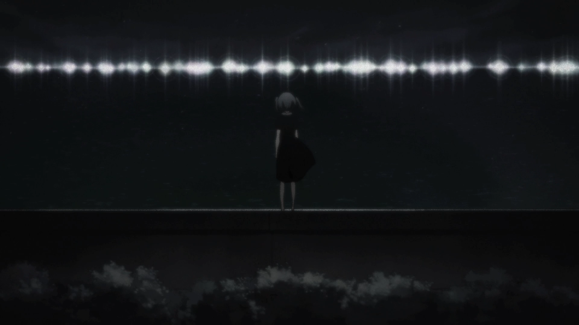 Yet, for Rikka, it’s a little more complicated than that. Her delusions may have begun out of denial, but she can’t imagine living without them anymore. She’s trying to get over it, but it’s not easy. And besides, she saw her father the day after he died. Standing out on the pier, looking out at the shimmering lights on the horizon, she saw him. Watching over her. So she goes out, night after night, searching for the Unseen Horizon—for her father. It’s the best she can do.