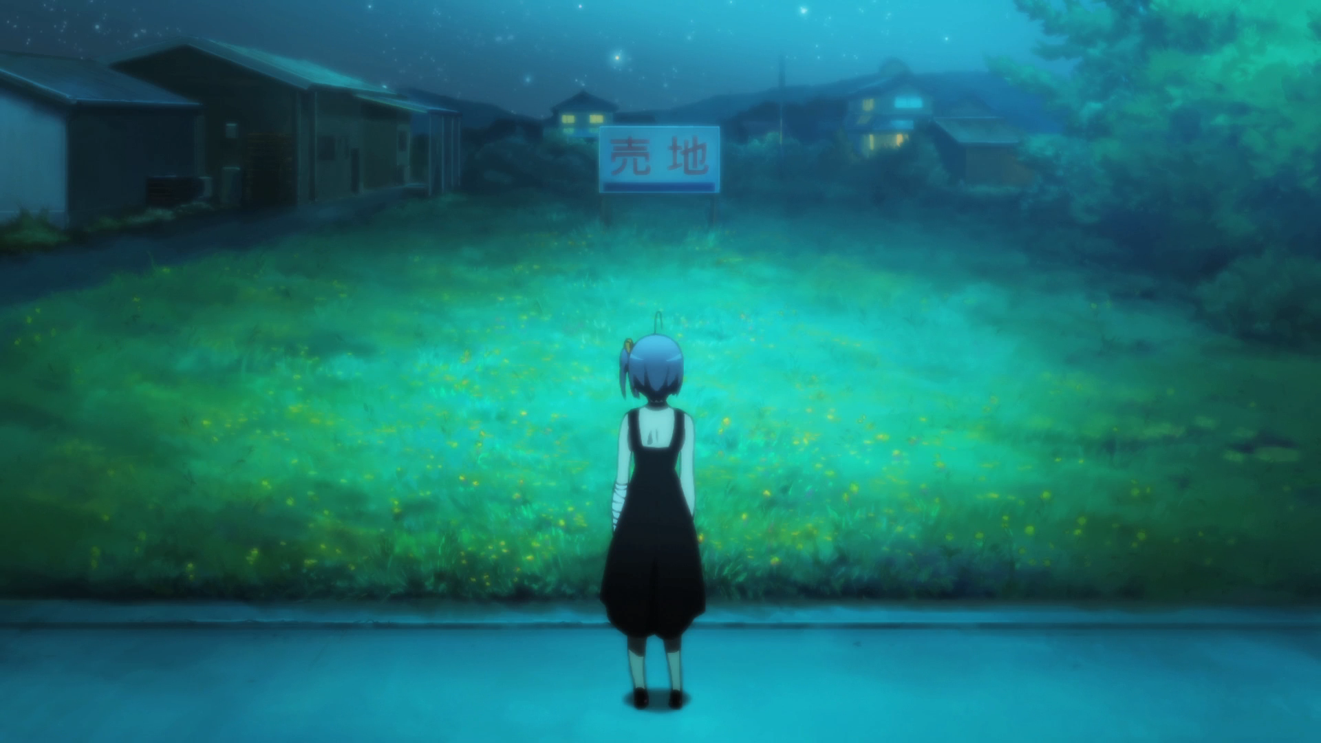 As for Yuuta, he doesn’t quite know how to process all of this. But he cares about Rikka, enough to join her on her journey wherever it leads. And one particular night, at Rikka’s behest, it leads into a quaint neighborhood, down a side street, to a small plot on the side of the road. “My base,” she explains. “The place where all of us were.” She approaches with eager anticipation. Memories flash before her eyes: her childhood home, her father smiling, her family complete, the way it was meant to be.