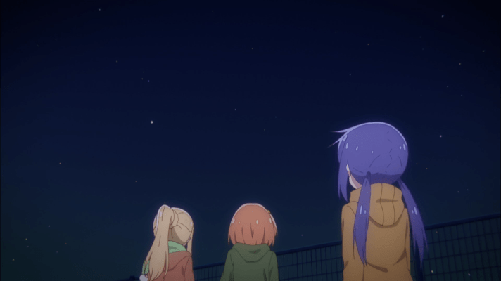 This brings us to the Christmas episode, which is Episode 8. A lot happens in this episode, and only one-third of it actually happens in Christmas; in fact, the Christmas segment is arguably the least notable one, especially compared to the final segment that throws in a bit of a plot twist. But that is getting ahead of ourselves; we have a Christmas to celebrate first. The main highlight of the Christmas episode is a stargazing session. By this point the club has done a number of these already, so by that point even the more geology-focused girls have a good understanding of the stars in the sky. One of those girls, Sakura, even remarks on how odd it is that she is now also interested in the stars as well as the earth.