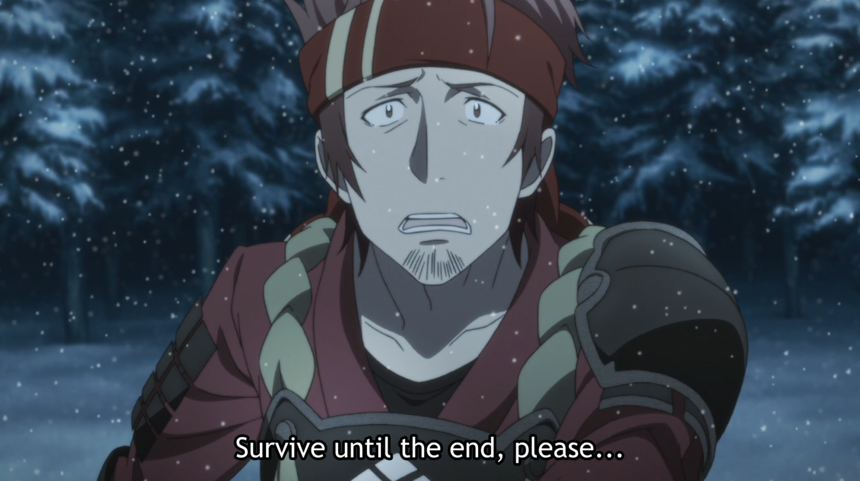 Moving on the to the second part of the episode, after the heartbreak of obtaining the time-restricted resurrection item, Kirito gives it to his friend Klein. As Kirito walks away dejected, a tearful Klein begs him to go on living. “You have to survive! Survive until the end, please…” Later that night, Kirito wakes up to a prerecorded message from none other than the late Sachi. She foresaw that she’d probably die and that Kirito would probably feel responsible, and thus prepared this message to encourage him. Her plea is similar to Klein’s, though it adds something significant: “So even if I die, you keep living, okay? Live to see the end of this world, and to see why it was born… The reason why a weak girl like me ended up here… And the reason you and I met.” Sachi’s message serves as a tragic contrast to Keita, the one member of the Black Cats who wasn’t present for the massacre: Upon learning what happened, he blames Kirito for everything and then commits suicide.