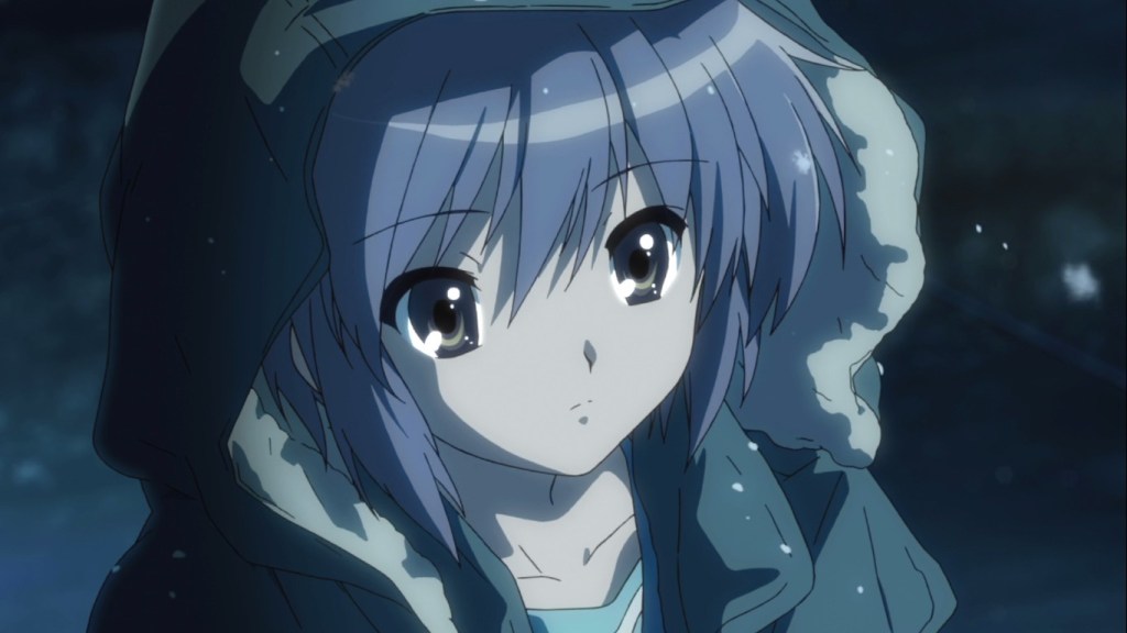 How could it be otherwise? Little does Kyon know, when he does his best to confort Yuki, to save her from the punishment, when he puts his coat over her shoulders, when he expresses compassion towards her, that he is piercing her heart in doing so, but I see it. Little does he know that it was her coat which was put over his sleeping figure. When he says “Yuki,” she raises her head: Is this her miracle? Is he calling for her first name? But no, that couldn’t be, and he is referring to the falling snow.