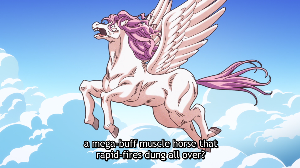 The first episode starts with the need to create a creature that can eat leaves that are very high up on the top of trees. One of them is the one who created the horse, so he always recommends horse-esque creatures including a pegasus. Each of the designers have their own unique style which makes it interesting. And silly. After coming up with an animal design, they run it through a heavenly engineer who works out the kinks and does a test run with the animals. The episode then goes on to explain why some animals are unrealistic and why certain animals just…work the way they’re designed, as well as provides some educational information about the species of animal discussed.