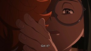 Another thing noting is that, along with scenes of the rabbits being eaten in the new OP, we see the seeds of empathy and compassion towards the demons being planted in Emma throughout the episode. Witnessing two demons she now consider allies help them out and do ordinary things such as saying grace before meals, alongside her realization of how even humans contribute to the consumption of other life, help her to eventually go against Norman’s genocide plan against the demons and form her new promise with The One to save both them and all the cattle kids.
