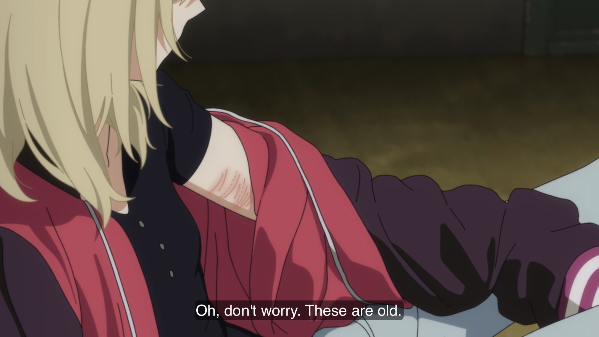 These girls are willing to make things right for their friends. Their crosses to bear involves the saving of strangers from the bully, the coach, the obsessed fan, the pedophile, and the legion of “seenoevils” that often appear. You might figure that the girls have already suffered enough—for example, Ai has been picked on because of her heterochromia—but there is deeper learning and self-realization going on here. Remember Ai’s confession on the lighthouse stairwell.