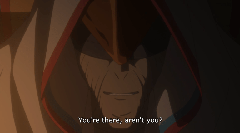 Meanwhile, after gathering some Goowee fish from the forest, Emma’s group heads back to get more food from the market. Thoma and Lannion accidentally reveal themselves to the two demons looking for them, and the kids separate in groups before they get the chance to catch them. Emma and Ray try to distract the demons while evading them before encountering the mysterious figures themselves at a dead end. They take care of the demons by slashing them to the ground, and the main figure makes himself known to Emma and Ray at the end of the episode: