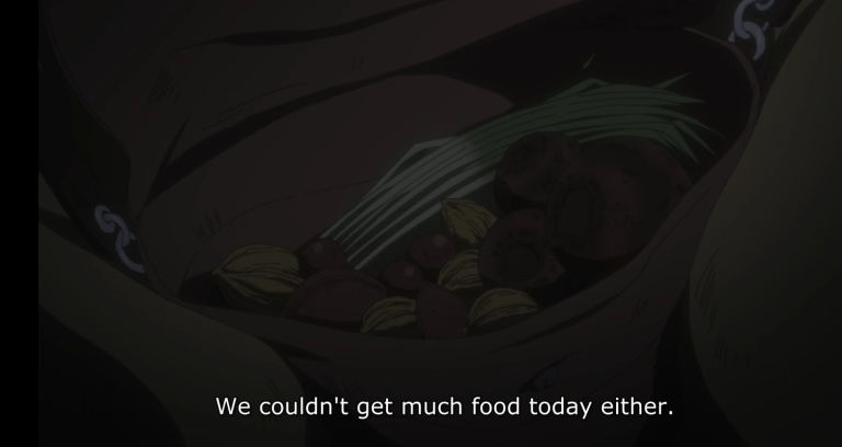 When the elderly demon accidentally drops his things at the shrine, the kids try to subtly run away until Emma decides to just come up and help him. Grateful for her help, the demon then prays to the shrine for his family and leaves some food as offerings, which we then find out is another way the kids have been to eat in the temple. As he leaves, he mentions the worsening state of the village he lives in, that everyone there is already at high risk of degenerating into beasts from the lack of quality human flesh provided. As I pointed out in episode 2, we once again Emma gain more empathy from the demons through a similar manner with Sonju and Mujika’s case: prayer and food/meals. This is actually an anime-original scene, and I have to say, I was very impressed by it.