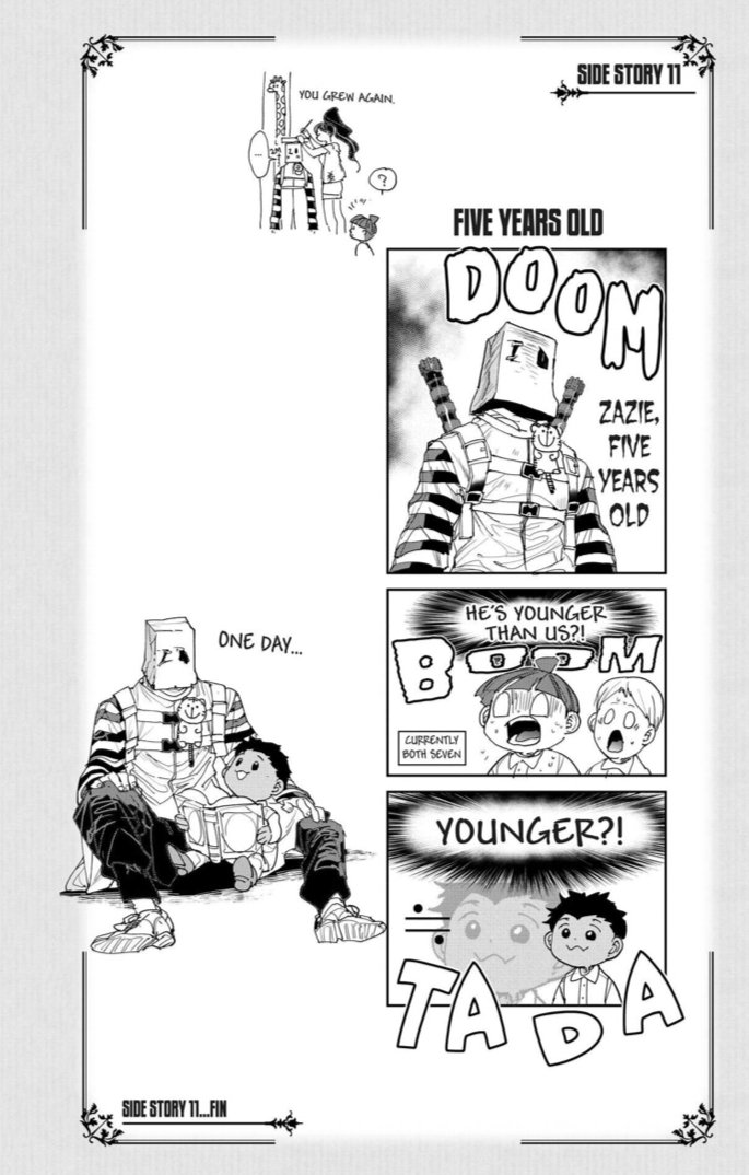 - This is probably more background info than an actual spoiler, but since his anime profile mentions it on the website, Zazie is actually five years old.