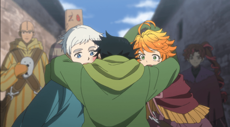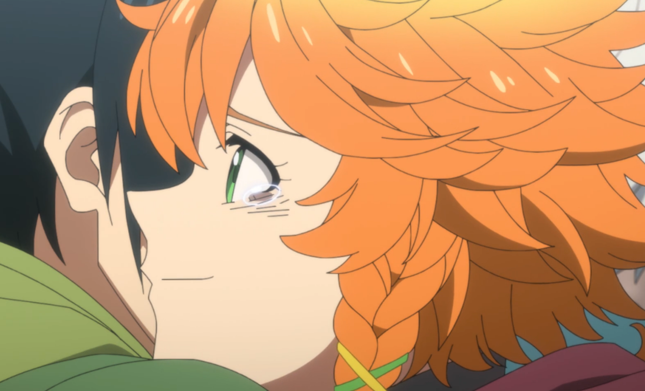 - Emma’s reactions to Ray hugging her are shown a bit differently with the two mediums. She’s more surprised and confused by the sudden hug Ray brought her in with Norman, while the anime has her more receptive in a sense and also emotional from the entirety of the reunion.