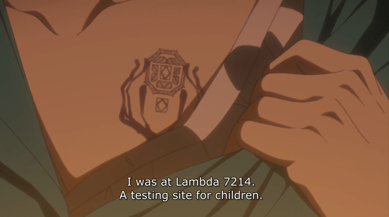 Back at the temple, the rest of the Grace Field escapees also get their surprise reunion with Norman. Norman himself is surprised that less than half of the kids from back in the House are around, to which Emma and Ray explain their future plans. When asked by Gilda where he was the whole time, he tells them of a new farm named Lambda 2714, and the drugs and experiments he and his group were subjected to before breaking out there with the help of the now deceased Minerva supporter Smee.