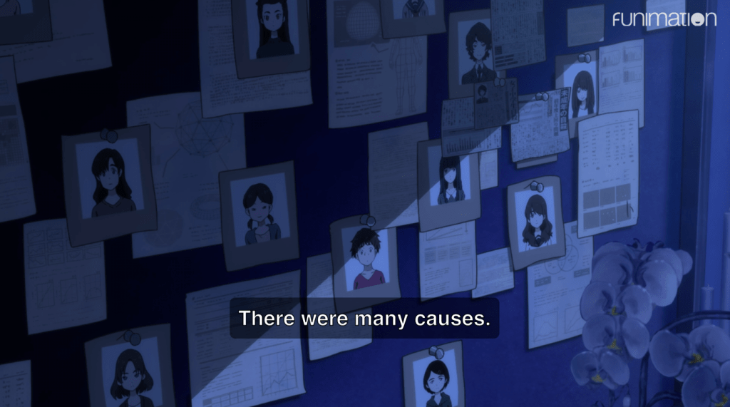 Only the case isn’t closed. Because there is a question that has pervaded every episode until now, but has remained unspoken: How is it that death could even become an option for the egg girls? Why does reaching a breaking point trigger suicide? What made death seem like a savior to these girls? This is the question that episode 11 tackles, in its own admittedly obscure way. The eggheads are focused on the underlying, deeper reality that unites all the eggs’ stories, as disparate as they are—the common thread, which is the idea that death is a release, a rescue, a beautiful ending, and as a result, it is tempting.