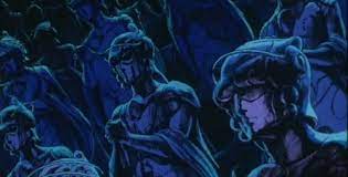In the final scene, the enigmatic sphere appears once again before the warrior, but this time, among the praying statues there is one of the girl holding the egg she took care of on Earth. Then, the image zooms out: We see that we truly are in the Ark. The last theme, “Different God,” starts, mysterious, solemn and…hopeful? So maybe, just maybe, the true Angel’s Egg has hatched. Maybe, just maybe, Noah’s dove has found a new, truer land. Maybe the warrior won this battle, even so. And maybe the tomb, the statue, is the broken shell which reminds us of the other side of the precipice. That of angels. This is the case with the tombs, the bodies, of those who die in Christ. “But Christ has indeed been raised from the dead, the firstfruits of those who have fallen asleep”.