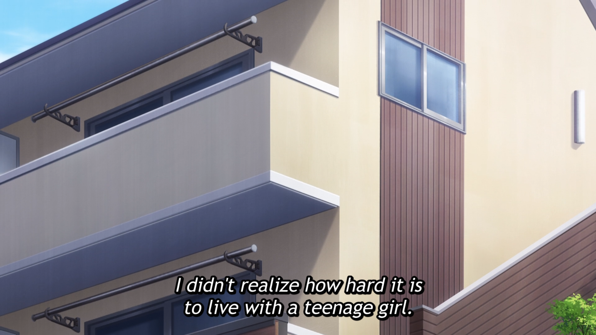 The girl, Suya, tries a few more times to seduce Yoshida, but he replies that he isn’t interested in her. He tells her she can stay for the time being, on the terms that she does chores at his house. Since he is pretty messy, she has plenty to do and is happy with the arrangement. By the end of episode one, he buys her some new clothes and a futon to sleep on more comfortably, but remains confused as to why she ran away from home and what she is doing in Tokyo since she is from Hokkaido.