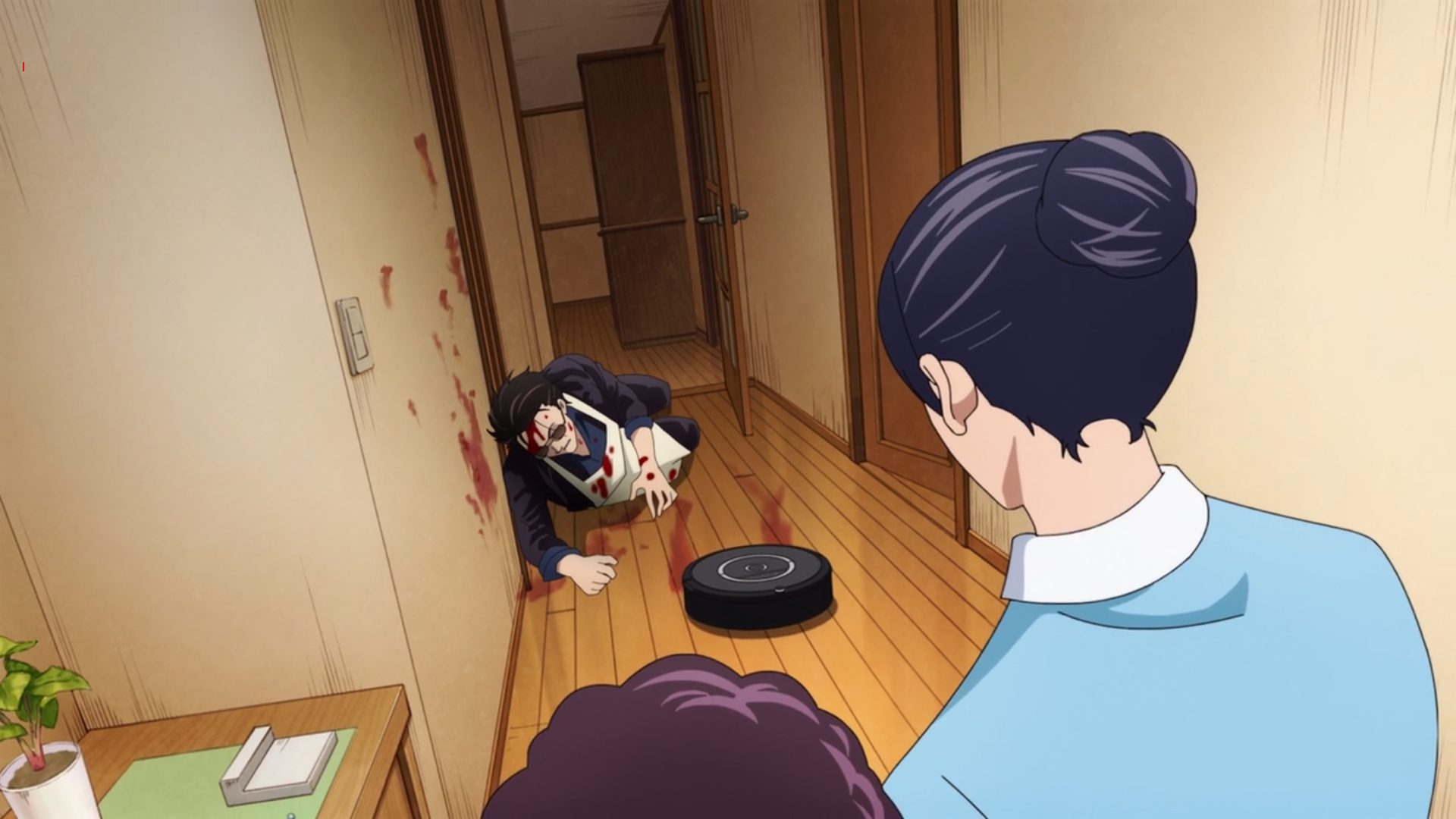 The gags hit well—not quite the same as they do in the manga, which may have been the problem that led the animators to go this route in the first place—and had me absolutely cracking up, even as I watched in a public setting. The Roomba “episode” was my favorite (each true episode, which are about 16-18 minutes each, contains mini-episodes that match chapters in the manga), with Tatsu seeing the vacuum as a new recruit in his battle against dust, realizing that it didn’t have the strength to accomplish its mission, and eventually being betrayed to what is apparently a bloody demise in front his “boss,” the neighborhood association head. But every other episode is hilarious as well, heightened by the foul language (though claire discovered that the dub has far less) and frequency of violence, both of which continue to heighten that difference between Tatsu’s old life and new. It never gets old, the same as with the manga, though perhaps it might if you watched five straight episodes. Consider taking a break between to let your mind rest and the comedic tones from this mostly-good adaptation of the wonderfully comedic manga to set in.