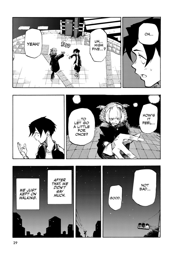 Our story starts with our main protagonist, a fourteen-year-old boy named Ko Yamori, who like many junior high boys his age, doesn’t quite know how to deal with girls, finding the stress of dealing with them so overwhelming to the point that he skips school everyday. Dude, I was awkward around girls all through middle school…and high school…but I never had the idea, or the outright boldness to completely SKIP school! I just hung out with the other nerds and kept it moving. But I digress. With no place to focus his energy, no one he can trust or confide in, and with no real ambitions in life, Ko ends up developing insomnia and spends night after night sneaking out the house and wondering around the streets of Tokyo, enjoying the whole new world that comes out when the sun goes down.