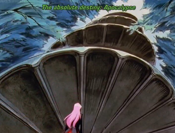 Characters fighting because of glimpses of something eternal. A meta-story inside all stories, the story of a loving Prince and of a Princess who waits and fights to reach him. Signs. A way up to love triumphant, to the faraway castle of a fairy tale ending, glorious union and the happily ever after. The way up encompassing all the movement of the universe (the common feature of the always different lyrics of that strange song on the way up, about cells and elements, historical events and daily realities, but all in movement). This reality being present at every level of the everyday world, which is moving. “If the egg does not open, the bird will not be born. The world is our egg.” A cosmic shoujo, and a revolution against it which is intended to become the new meta-story.