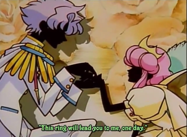 You may be right. It tends to happen to me: I guess that belief in Heaven makes many martyrial, tragic/hopeful endings of this sort happy. But, *spoilers*, Ahiru is with the man who chose her as Ahiru, and he is just beginning to develop his own potential, which could take them anywhere, and their hope has already conquered Drosselmeyer’s plan. I think the situation, while by no means easy or closed, is one of shared communion, pure love and hope, and there’s a way forward. That’s a sort of ending I really like.