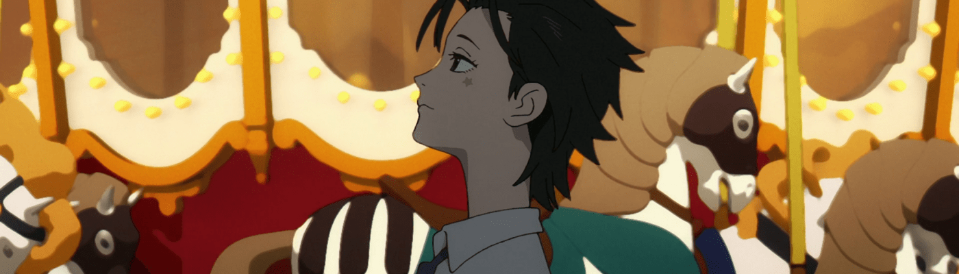 This episode is tense. I watched it twice, and even when I knew what to expect, I still caught myself bracing. In a good way though. I may have referenced the Battle Royale-style set up in the description above, but this first episode is as focused (if not more so) on the puzzles and mysteries behind what is going on as the internecine rivalries and building anticipation of violent confrontation among the students. There are the cats, for one thing, and the girl who whiles away her time with them, surrounded by stacks of deliveries from Nyamazon (Amazon for cats?). Did she somehow have them delivered in the void? Or were they there already, in which case, why? There are the feathers (but no birds), which Nozomi takes as inspiration for her fearless leap into the empty space that could be the sky or might not be. Then there’s Nozomi herself, who was a bit of an odd duck—saying that tearing up textbooks “feels good”—even before all the weirdness with the void began. She also turns down the offer of a smartphone, and like, who does that?! There’s the giant carousel in the gym and the flashback reference to how “lately things have been tough for adults too,” implying that there has been some kind of national or global catastrophe unfolding. All in all, a lot to sink your teeth into if you like the kind of anime you need to sink your teeth into in order to enjoy. If not, it could just be frustrating and a tad overwrought. The character design is a little flat and simplistic, but on the second viewing, it grew on me and I appreciate the vibrant color design. The range of characters is pretty decent, with a couple compelling ones, as well as the one you know you’re going to love to hate (Hoshi, I’m looking at you, or rather your little star eye tattoo!), and then probably end up having to grudgingly respect. If you like puzzles, large casts, and complicated world-building (where is the line between the Super Powers and the Rules?), and don’t mind the occasional burst of under-aged brutality and rushed in-betweens (Madhouse, I expected better!), this is probably a good show for you. For my part, I’ll keep watching, but if the balance begins to weigh more heavily towards Lord of the Flies, then I’m out. Already had to study that book two years running in high school because, transfer student.