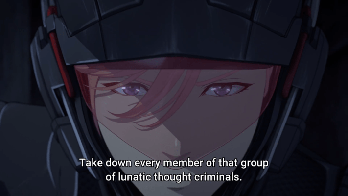 After a vision of lines of light arising from the 3D world and connecting with each other, we cut to a nocturnal Japanese city. The world is close to ours, but flying drones kindly remain the citizenry that the worshipping of gods and Buddhas is forbidden, that nothing but the material is real, and that thought crimes will be persecuted. Even belief in phantoms or superpowers is off-limits. Tonight, our ellite police unit is trying to capture Miracle Mike, a supposedly fake miracle-maker with a moustache who seems to be hidding with his followers in an abandoned block. Entering the darkness, the Kirihara siblings, who are the core of the unit, see this schoolgirl who then just… vanishes. As it turns out, the believers are ready for battle, with radio inhibitor artifacts and shotguns, and even an EMP. Our policemen are no newbies either. As the younger brother, caught of guard, is about to die, we cut to the white-haired Kuroki brethern, believers in a Spiritual Force, who are on the run, aided by a mysterious laboratory. An incident at a bar by the road exposes that they can do things that normal humans cannot. But, among the policemen, may the older brother have the same powers? And what may the cryptic message of the mysterious schoolgirl mean?