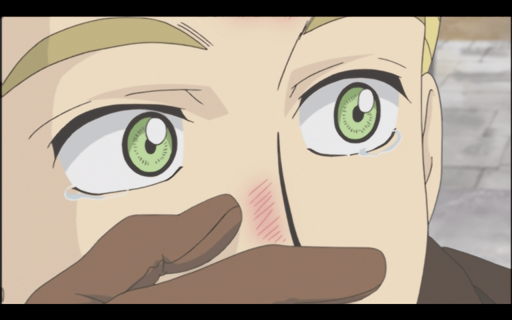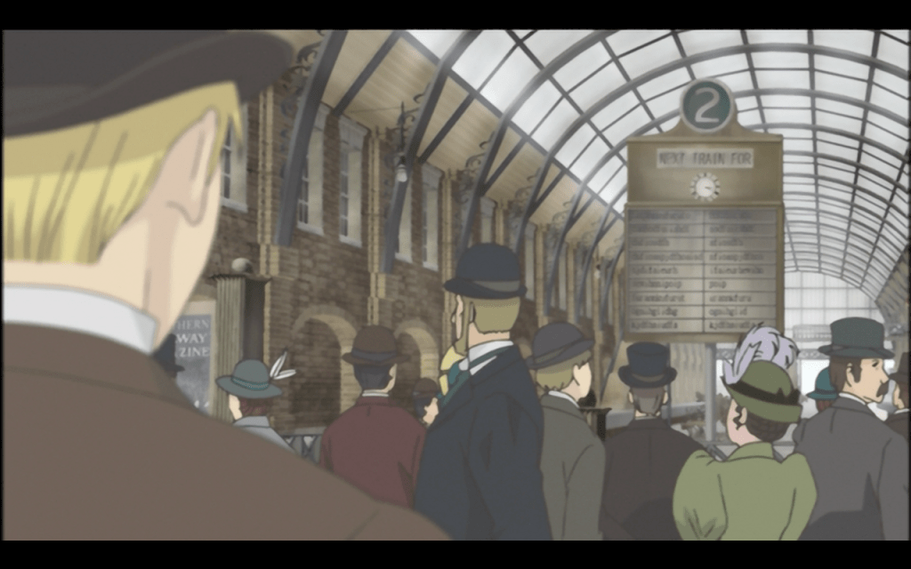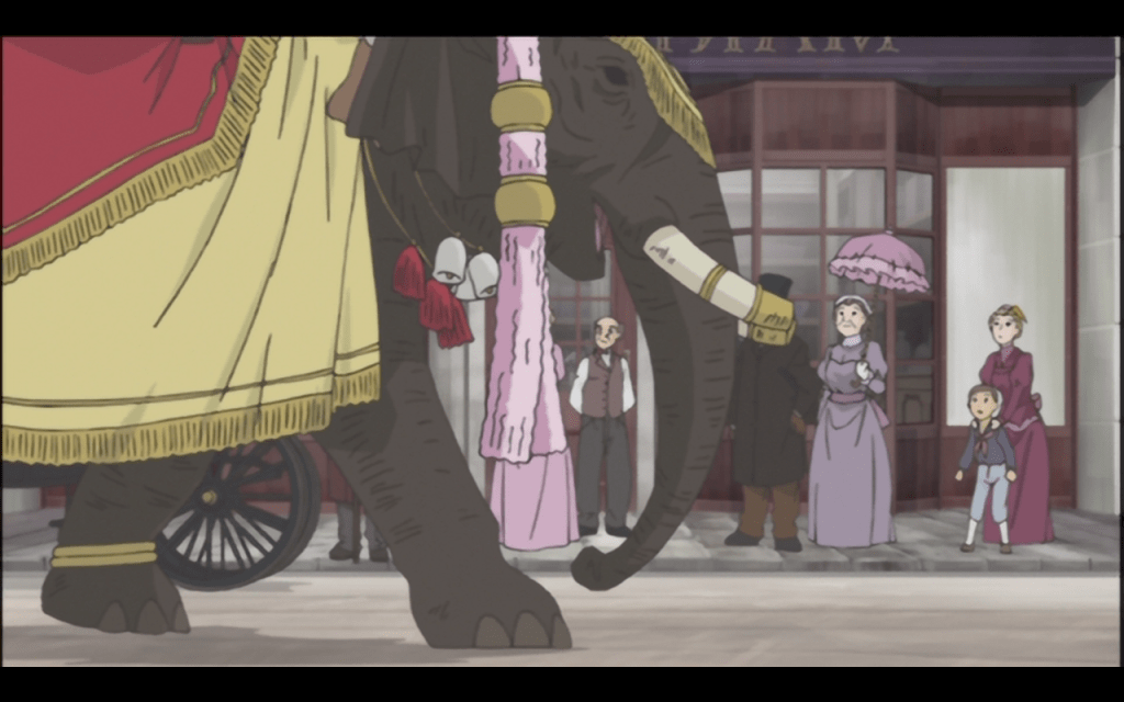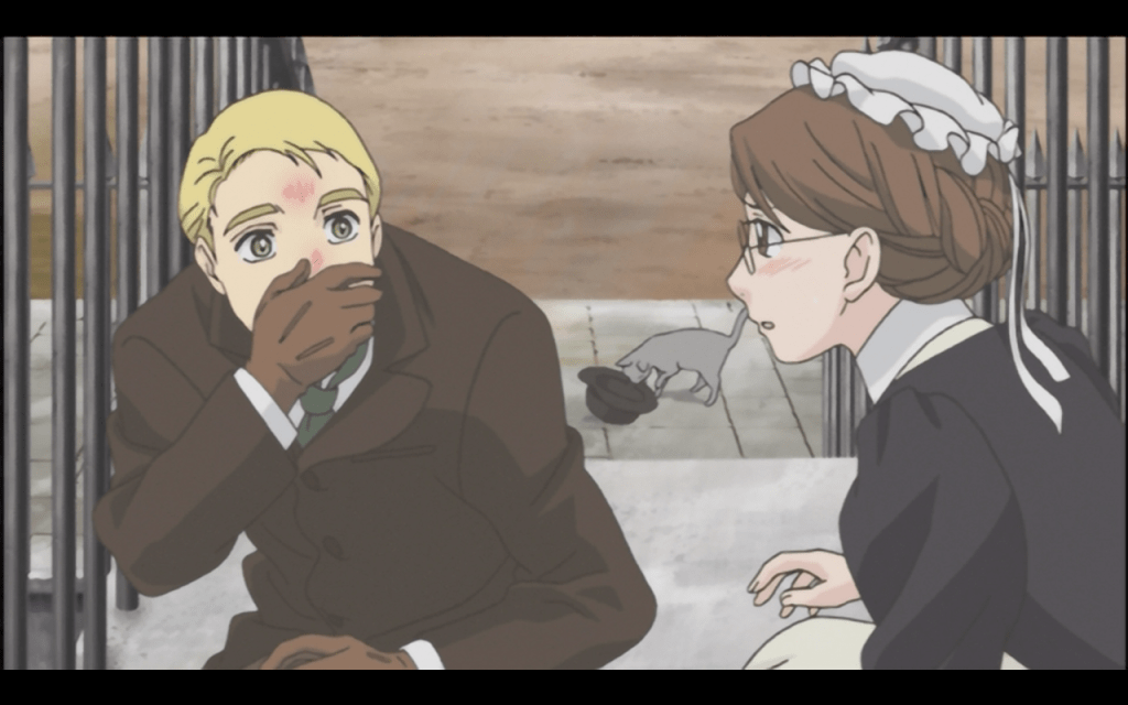 Until halfway in, everyone is acting as if there are no eyebrows to be raised at a wealthy, Eton-educated young man falling in love with a shy maid in Victorian England; as if it’s just cute that two shy people are taking a long time to get together. The seeming insensitivity to social realities is made worse in the Japanese original as the VA for Emma uses a very refined hime-sama voice for a character that comes from a pretty rough background. Emma does not, as one character intimates, speak the Queen’s English.