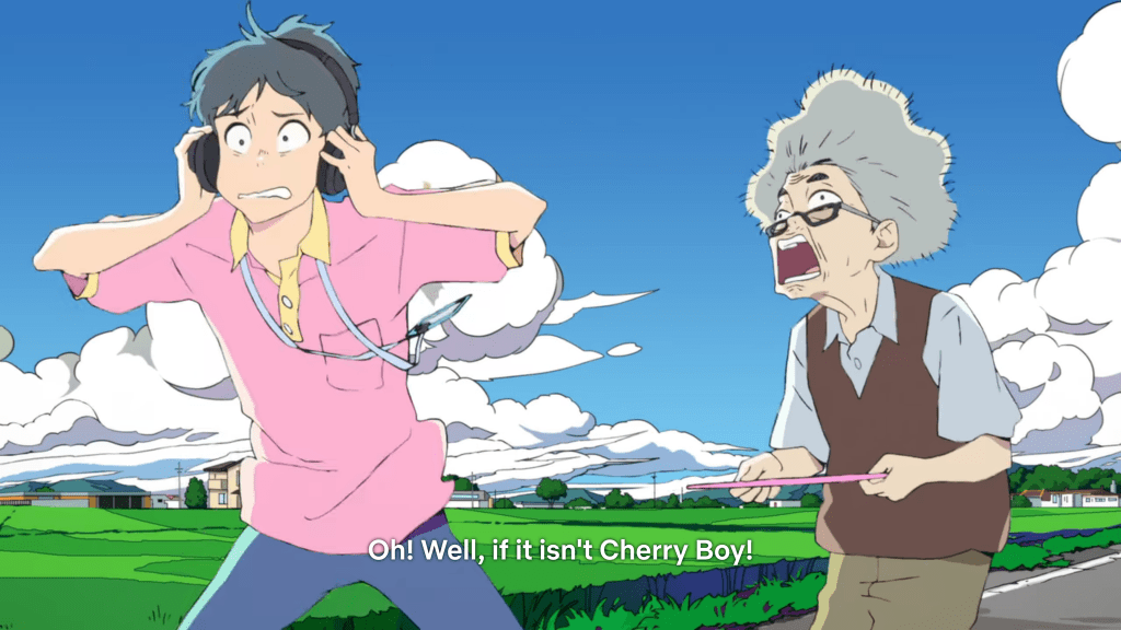 But what brings the two teens together in actual reality is the elderly haiku-shouting Mr Fujiyama and the folks at the seniors daytime activity center at the mall, where Cherry works. After bumping into one another, Smile ends up joining Cherry and the team at the day center. When they realize that Mr Fujiyama’s constant search for something is not simply a mark of senility, but is an actual legit quest, the teens team up to help in the search. It’s their tender care for the old man that brings Cherry and Smile together, day after day, and gives their love the time and room it needs to grow.
