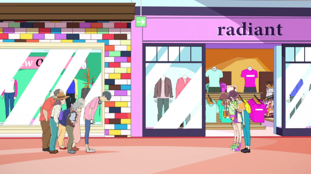 The boldness of the visual palette contrasts with the fineness of the line work and the use of kagenashi—or shadowless, almost flat color design, a style the studio adopts in Mars Red too, and which is reminiscent of Liz and the Blue Bird and Japan Sinks 2020. (Incidentally, the masterful composer Kensuke Ushio, of A Silent Voice fame, did the soundtrack for both of these last two projects as well as Words Bubble Up Like Soda Pop.)