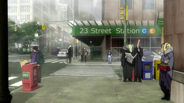 The NYC of Kekkai Sensen has two hearts. There is the Lovecraftian void from where the vampires come, which promises endless horrors and fights. There are the ruins of a Cathedral, where lonely people go to think. The forgotten city of God, perhaps. It is destroyed. In Jerusalem, the Temple is no more. The balance tilts towards the shadow.