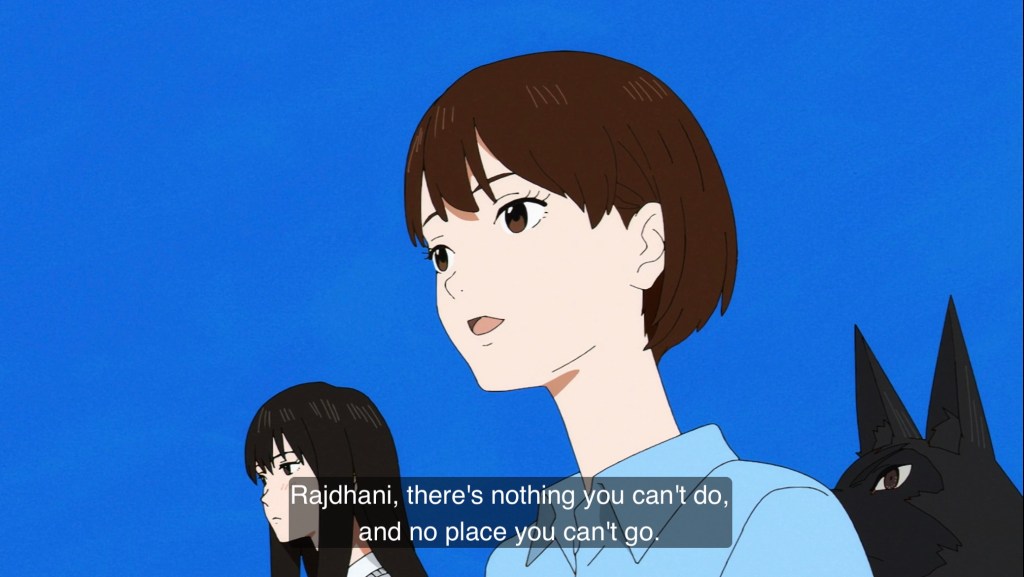 Near the end of this episode, after earlier departures of virtually every other stranded student, Rajdhani decides to leave, too, to search every single “this world” in hopes of discovering a way out. It’s a lovely scene, as each member of the group that had formed and worked so hard to find a way home all said goodbye in their own ways:
