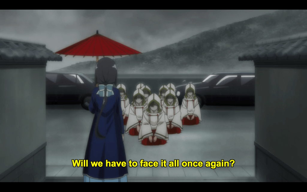 Yuki Yuna has always highlighted the inhumanity of a socio-religious system—a culture even in this not-quite-Japan—that demands such costly sacrifice of its youth. There is something deeply unsettling when the ones who should be protected become the ones compelled to do the protecting, and this series has never shied away from exposing the brutality of such a troubling inversion. When the elders of the Taiga religious order turn up at her door once again, Wasshi expresses her frustration briefly but powerfully before acceding to their request. This makes me think that in this season, more so than previous ones, the girls may very well end up fighting a battle on two fronts: against both the alien enemies of humanity, and the human authorities overseeing that war effort and press-ganging hundreds of girls into military service. In short, this may just be the most revolutionary season of Yuki Yuna yet! I’ll certainly be tuning in, especially now that Karin has started answering to her nickname—only I wish they’d stuck with the original translation, “Fishface”.