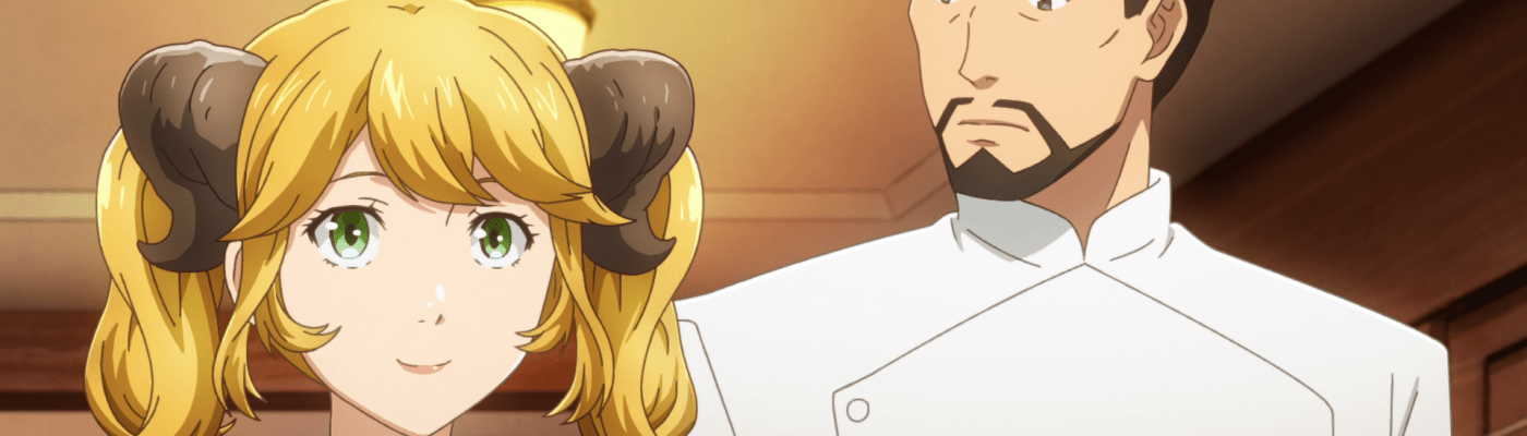 Given that this is a slice-of-life series with well-established characters and setting already, episode 1 provides just enough background to remind us where we are, and then sets up several potential story threads that it will probably wind its way through as the season develops. There’s Hilda, who in this episode toys with telling her adventurer friends about the restaurant “some day”; in the OP, she and her friends are enjoying a meal at Nekoya together. So I expect we’ll be seeing more of them. There’s also Sarah, the adventurer from Season 1, who is in the middle of tracking down a great treasure. And the episode 2 teaser promises some star-crossed lovers, perhaps a variant on Romeo and Juliet (but with food instead of suicide).