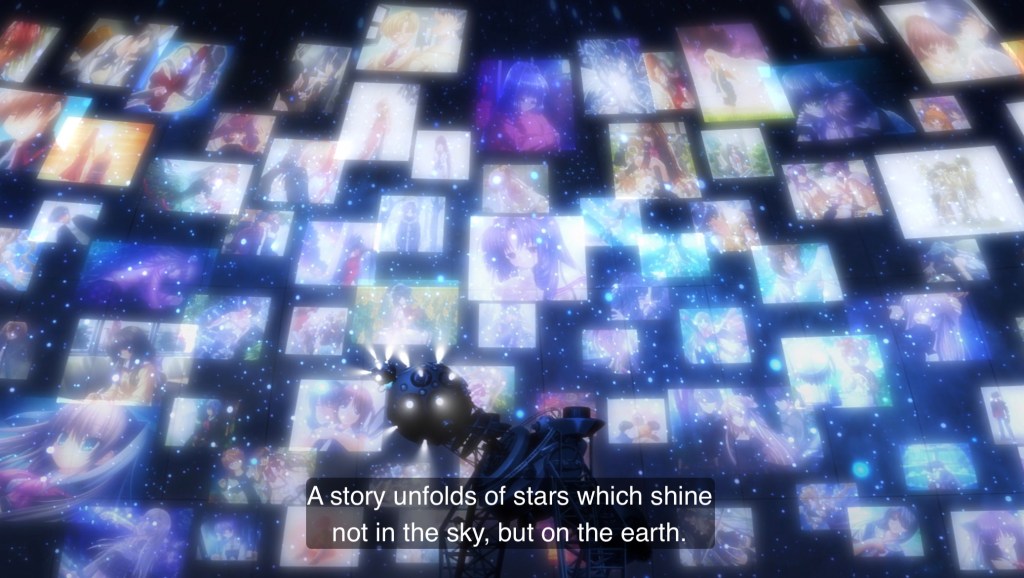 A familiar little girl wearing a sailor fuku with stuffed dango in hand walks into a planetarium, where she’s greeted by another familiar face, an android with blue hair, who introduces her to a story among the stars, where orbs are able to grant wishes and friends and family can join together one last time…