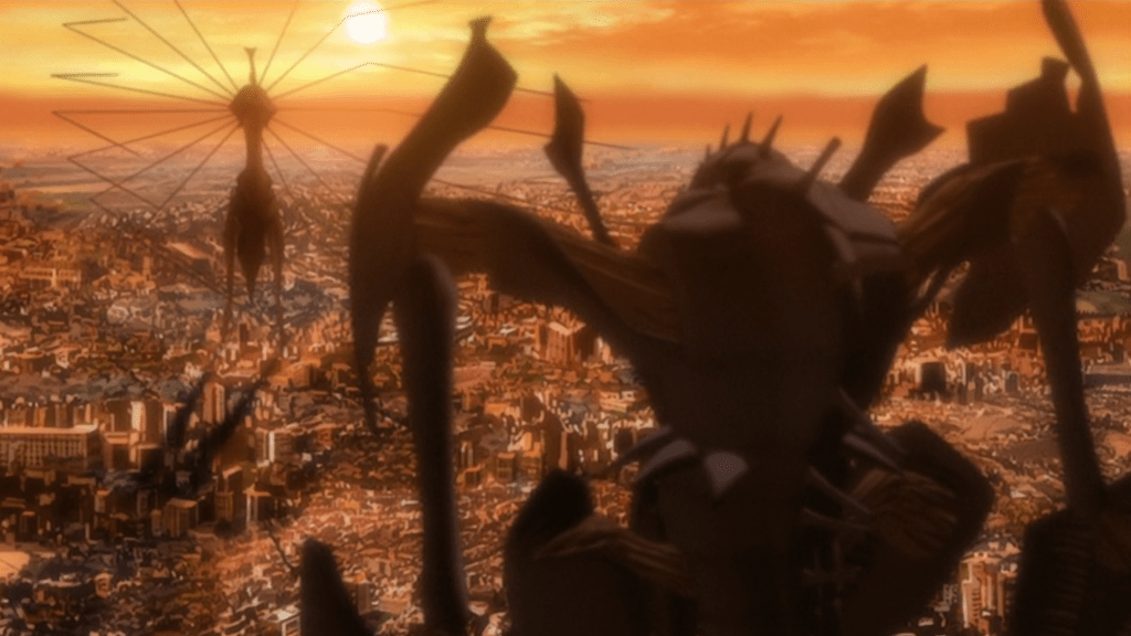 And here comes the twist. In the second episode (spoilers), Waku, by then apparently our main character, with compelling hopes, flaws and dreams, is already planning on a secret identity and a hidden superhero career, “Zearth.” But he receives a friendly elbow as he descends victoriously from the robot, and suddenly falls off a cliff. The police, though, discover that he was already dead when he started to fall. As it turns out, piloting the robot sucks your life energy, and you will be dead in the moment you descend from it. But refuse, and the whole Earth will be destroyed. Besides, the confirmed collateral damage of the robot battle are 153 mortal victims. And the contract meant that nobody else can pilot the thing but them.