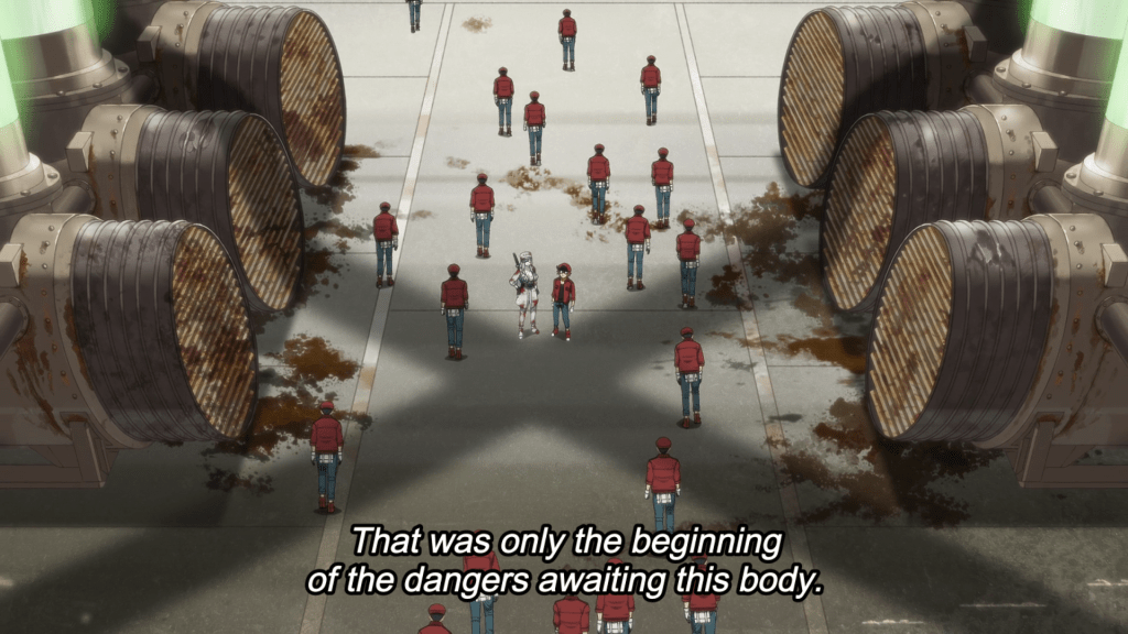 When I drop an anime, I try to forget about it. After looking through my Anime-Planet list, Cells at Work! Code Black fit the bill as one of those. For the unfamiliar, it’s similar to the original Cells at Work!, but has a darker tone, more blood, and a lot of cleavage. It follows a red blood cell delivering oxygen to the body among other missions, all while traversing various organs and learning about them as he goes along. It tackles subjects like alcohol, smoking, disease and even reproduction. What has always stood out though about either series are the descriptions that are given in every episode. The narration explains different organs and their functions, types of cells, scientific names of bacteria, and other human anatomy facts. Learning while watching anime makes me smile because I am a certified school teacher, so I’m glad to see the media I enjoy also sharing biological facts. Sure, at times it’s over-exaggerated, but it’s anime, so I’m having fun watching white blood cells defend the human body with samurai swords.