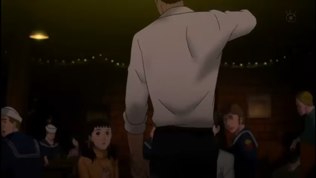This actually happens during our Christmas episode. Sentaro, the guy of the “swing”, has been grumpy and distracted, and Nishimi has been trying to make him respond with his music. It starts to work. And then, a drunkard makes a racist comment, and the young musician finally loses his temper. He almost starts a fight. When Junichi, the man he respects and loves as a brother, stops him, he just walks away in disgust.