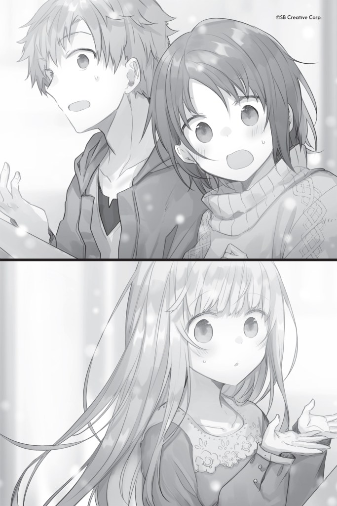 All of this sounds fun and relatively low-key; sure, the Christmas Eve chapter does allow Amane and Mahiru to finally reveal their “relationship” to Amane’s friends, but beyond that, it’s not like it’s some earth-shattering event or anything. Amane’s friends accept what’s going on with little fanfare and will probably just contribute a bit more to future hijinks, right? Well, when we look at things from Mahiru’s side, especially with what we learn from volume 2, the events are a lot more meaningful than that.