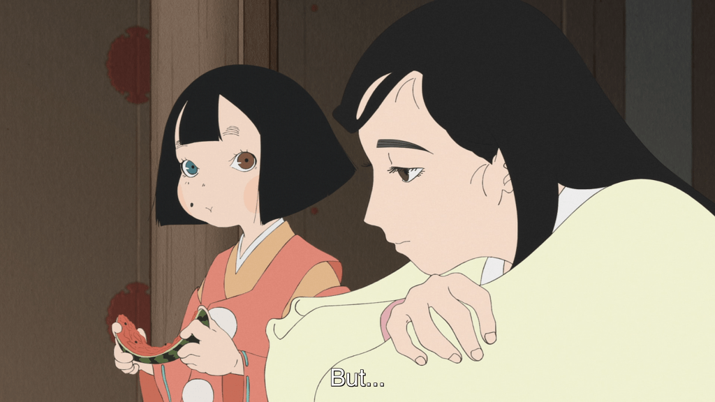 But who is there for Biwa to forgive? The dialogue offers no clues, but the answer soon materializes as Biwa decides an episode or so later to take leave of the Heike in search of her mother, the once-famous shirabyoshi dancer from whom Biwa inherited her heterochromia; the woman who could, perhaps, have helped Biwa to navigate the frightening powers that came with that pale blue eye; and the one who abandoned her and her father, leaving Biwa without even a name to call her own.
