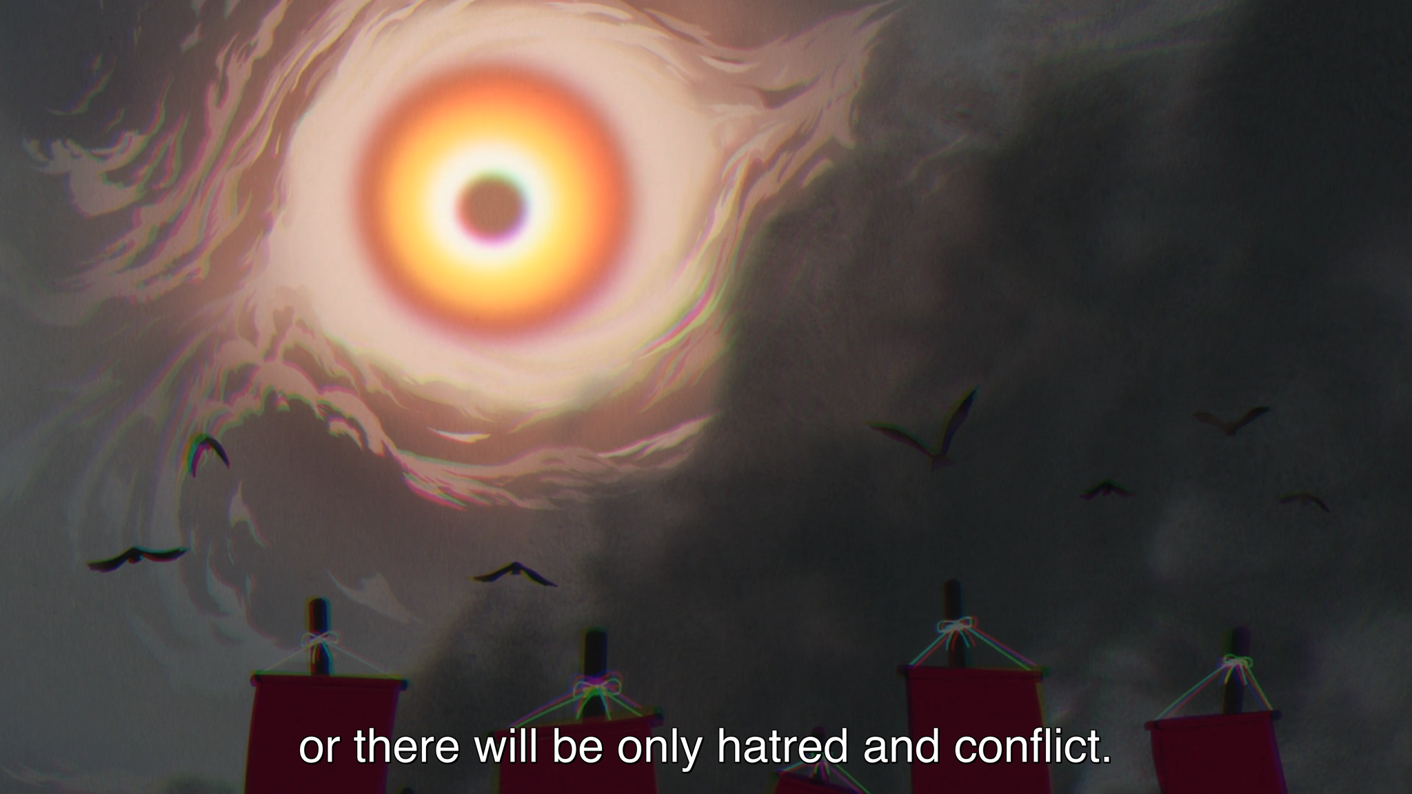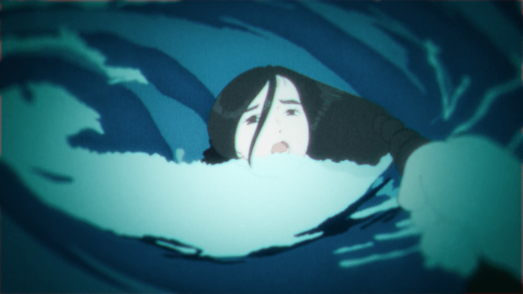 The most disturbing vision Biwa sees throughout the series, judging by the number of times she flashes back to it, is the drowning death of Tokuko. Initially hysterical in her attempt to prevent her friend from nearing the sea, Biwa quickly subsumed her urgency into a kind of numb fatalism. But as with Tokuko after forgiving her father, Biwa’s forgiveness of her mother quickens her capacity for agency, so that when Tokuko’s watery fate finally plays out before her, Biwa rejects it and refuses to comply. She reaches out to a distraught Tokuko, who is determined, in a moment of overwhelming tragedy, to embrace a watery grave, and speaks life over her, insisting that it is not her time to die, that instead she is destined to live.