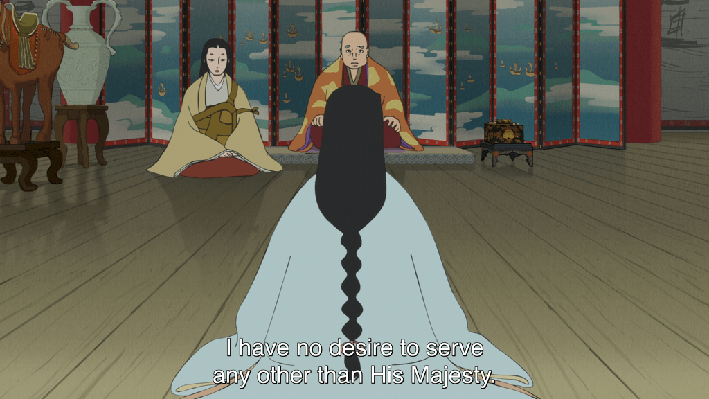 But something startling happens in episode five: Tokuko forgives. She forgives her father for his manipulative treatment of her; she forgives her husband, Emperor Takakura, who is unfaithful to her and abandons her; she forgives her father-in-law, Emperor Go-Shirakawa, who baits the Heike relentlessly. Tokuko forgives the men who ignore, isolate and use her as a pawn. But what’s incredible about this—and what rescues it from becoming merely another tale of feminine disempowerment—is Tokuko’s reasoning behind her decision to forgive.