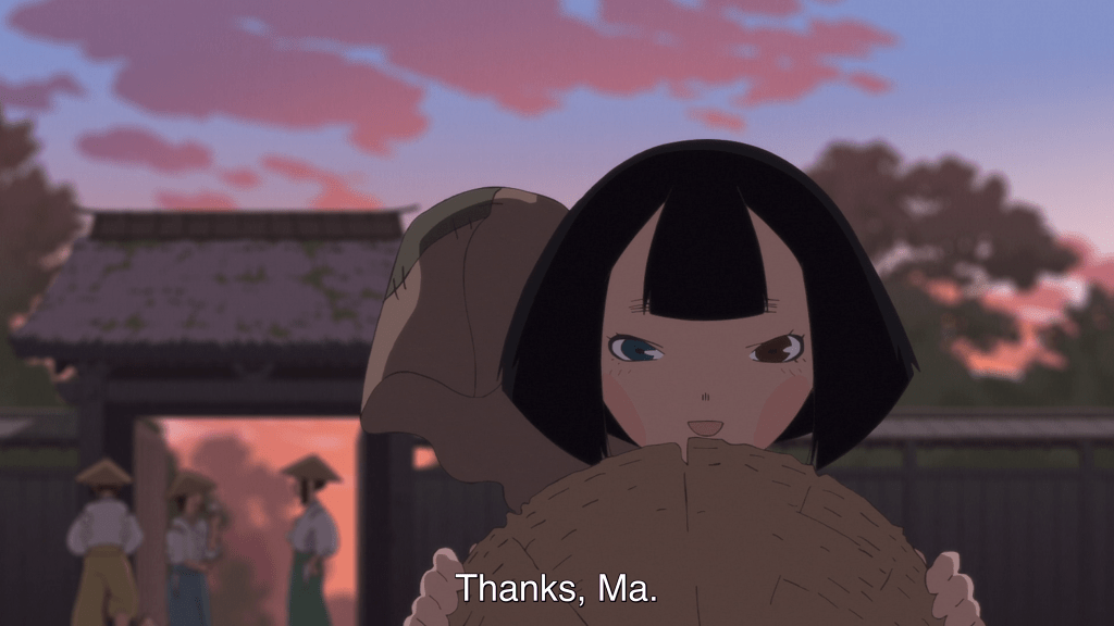 When she finds her mother, it’s not an easy reunion. Initially, Biwa feels rejected once again and pulls away to head back out into the world. But her mother’s humble apology reminds the girl of what it was she came there for, and she is able to turn back around and smile at the woman who abandoned her so long ago, and share with her the name she has chosen for herself. Biwa does this as if presenting her with a gift and not in a tone laced with years of resentment. In this instant, it is clear that although she does not say the words, Biwa has forgiven her mother. Later, when they do finally part, Biwa’s words and gestures overflow with a tenderness we’ve not yet seen from the girl. In forgiving her mother, Biwa regains the capacity for joy and affection that she lost as a child.
