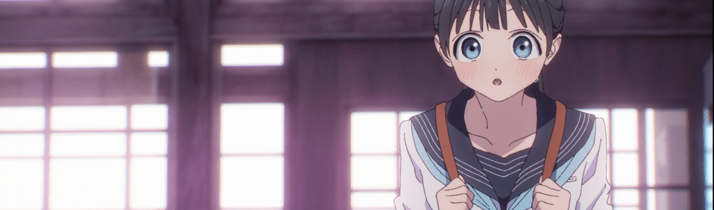 Folks, give this one a chance. Please. I promise you won’t regret it! Yes, the title’s a bit meh, and the premise may sound a little too niche, suited only to fans of “cute girls doing cute things”. But that’s not at all what this is. In its opening episode, Akebi’s Sailor Uniform is a thoughtful, delicate and luxuriously animated work shot through with color, joy and background art that is so tangible you feel as if you could step right into the scenes. The opening fifteen seconds alone will transport you to another world, one that is equal parts Non Non Biyori (for its setting and vibe) and The Heike Story (for its cinematic quality). As it progresses, or should I say, blossoms (because that’s what it feels like), strong echoes of Super Cub emerge in terms of its aesthetic, emotional nuance, and attention to the kinds of small details that make a show stand out. And no wonder, considering that this series and Super Cub share a common source: the mangaka and character designer Hiro. This is also CloverWorks at it’s Naoko-Yamada-inspired best, reminiscent of the first episode of Wonder Egg Priority. I mention all these other series not because Akebi’s Sailor Uniform is derivative. It isn’t. Instead, it’s as if Akebi’s production team has been the student in the back of the classroom quietly absorbing everything from the greatest teachers working in anime today, and is now standing before the class, demonstrating not just what has been learned, but where things can be taken from there. And indeed, most of the team behind this beautiful work is relatively new to the industry or in their roles. This would normally make me a little nervous for the show, but if what I’ve seen today remains consistent, and the content of the story is up to the task, then I have to say, I think we have a contender here for my favorite of the season. Here’s hoping, at least!