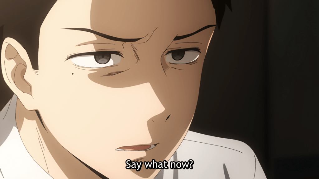 This was my most anticipated new series of the season, based on the preview trailer. Did it live up to my expectations? Well, the art is definitely on point, in that slick, clean way that is reminiscent of the other high school romance from CloverWorks, Horimiya. The world that Wakana and Gramps inhabit is fascinating, and enough on its own to keep me tuning in at least for the requisite first three episodes. The two MCs’ passions—hina dolls and cosplay—are played quite a bit more for their pervy implications than I expected, with a lot of leery facial expressions and some heavy breathing etc. The trailer presented this as a more straightforward comedy romance, but the first episode definitely brings a bit of an edge, shall we say, to the premise. For instance, the character whom Marin is so desperate to embody (she literally says she wants to become her) is named Shizuku Kuroe-tan from Saint Slippery’s Academy for Girls: The Young Ladies of the Humiliation Club: Debauched Miracle Life 2! Even Wakana doesn’t quite know what to do with that. Is this going to devolve into a seinen wish-fulfillment series? I don’t think so. The interactions between the leads was far too genuine and human throughout the first two-thirds of the episode for it to turn into pure fanservice. There’s so much potential here for something thoughtful and maybe even profound in this exploration of the collision between cultures or “exact opposite worlds” as Wakana describes them; between the Japan of the 1890s and modern otaku culture of the 2020s. My hope is that in bringing these two worlds together, something truly rich, relevant, and creative may emerge. But maybe I’m asking for too much. I’ll stick around for awhile though to find out!