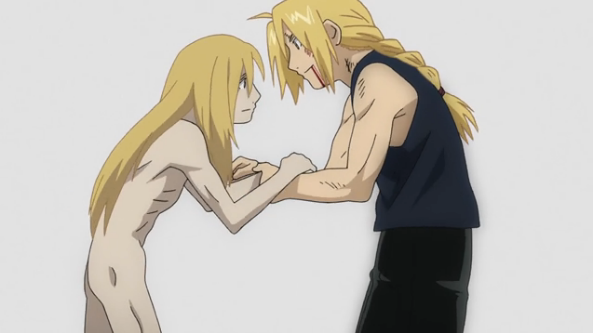 At the end of Fullmetal Alchemist: Brotherhood, when Edward stands in the space of endless white-washed walls, he and God have a conversation about the payment Edward will provide to win his brother’s body this time. The response from Edward, however, is strikingly different than when he was first shown the truth of alchemy, as he tells God the entire “truth” that he had learned through suffering.